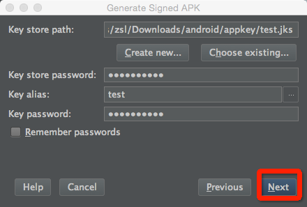 一路Next,即可完成签名打包(注意保存各种密码,下次再打包时就不再需要此步骤)